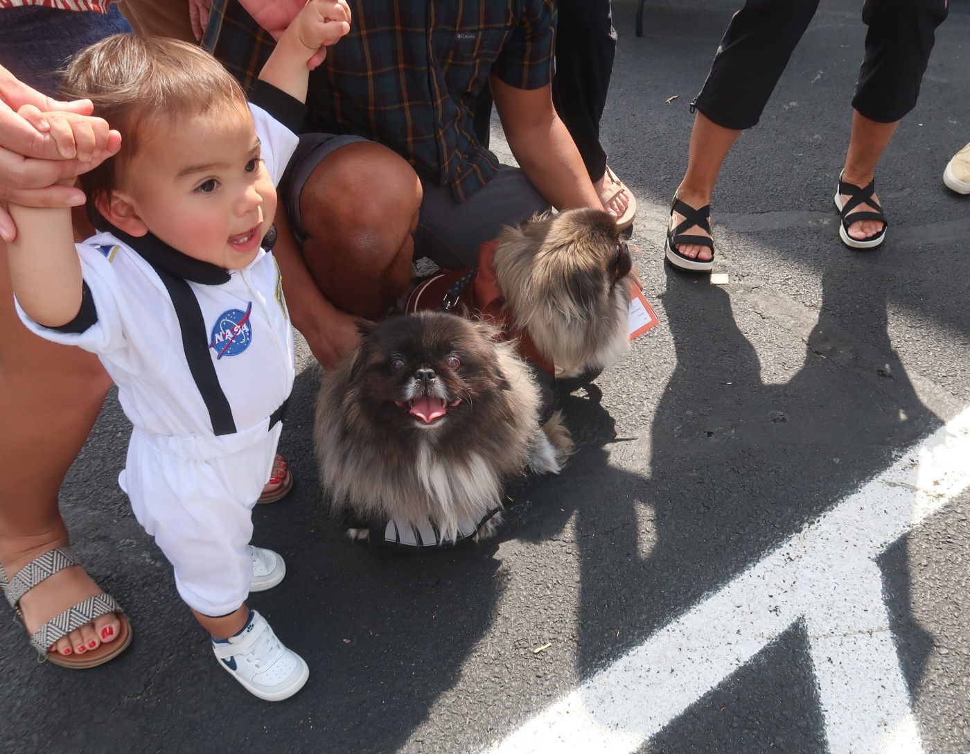 Keerti Goorah and Christine took home the “best human/pet duo” prize for their dogs Captain, a playful Aussie doodle, and Winnie, a lovable mystery mutt. Keerti dressed as Joy from the movie “Inside Out,” while Christine portrayed Sadness, and their furry companions were decked out in colorful “memory balls.”