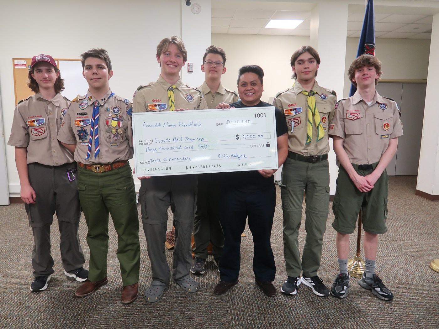 The Annandale-Mason Roundtable on Jan. 13 presented a $3,000 grant to Scout Troop 150 to expand opportunities for local youths to take part in outdoor activities.
