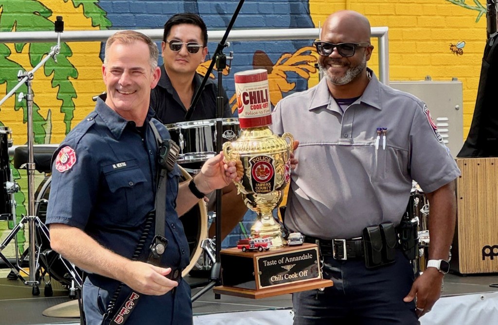 The chili cook-off, a regular feature at the Taste of Annandale pits the Mason Police District against the Annandale Volunteer Fire Department. Festival-goers tried samples from both competitors and voted for their favorites. When the last drops of chili were consumed, the firefighters were declared the winners.