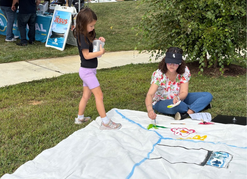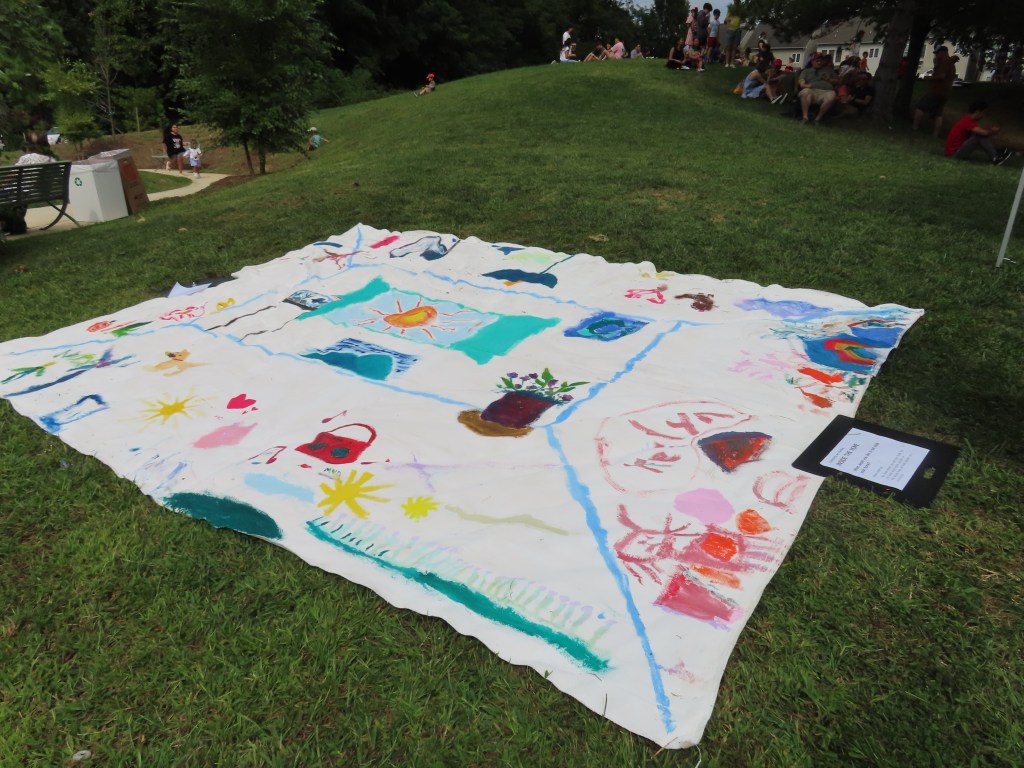 Community Art For Everyone’s communal art project at the Taste of Annandale was a large painting on the theme “Inside the Home.” Festival-goes contributed their vision of what they would like in their “home,” as a broadly defined space.