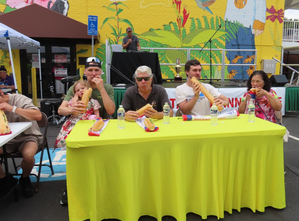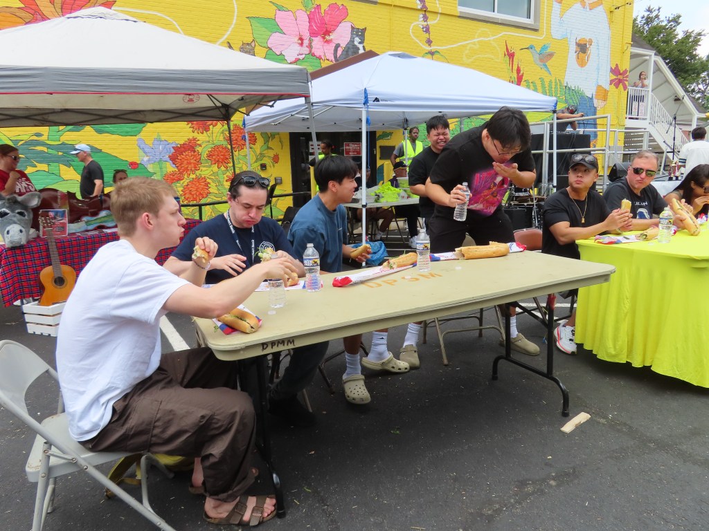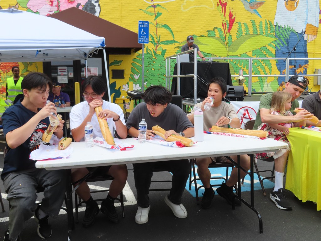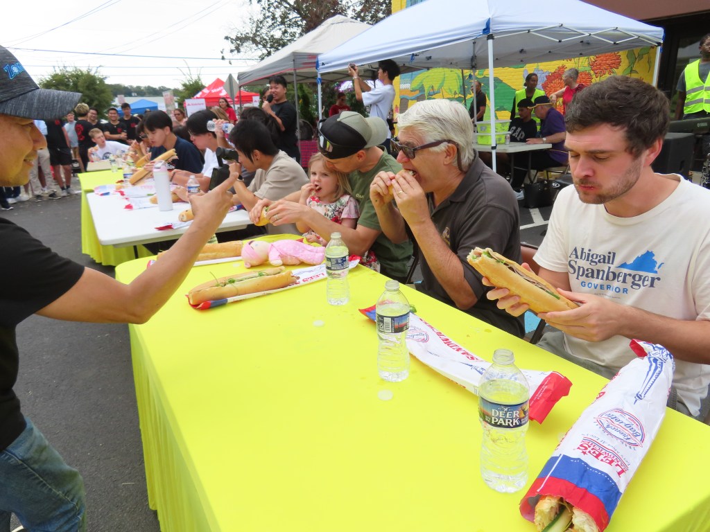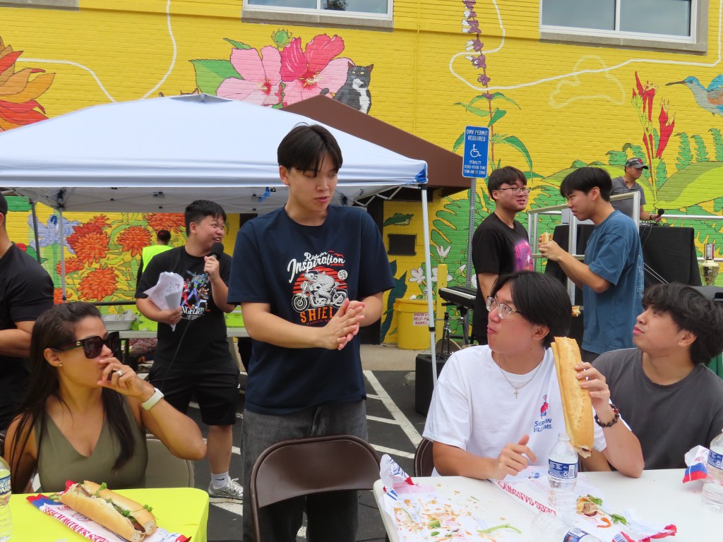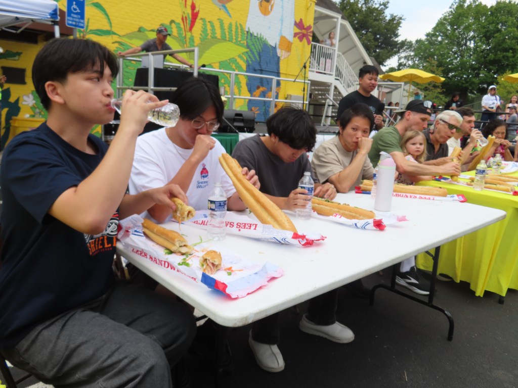 The winner, James Clark, demolished a Vietnamese bahn mi sandwich in record time, taking home a trophy and a $100 prize. Alex Tran came in second, winning $50 and a trophy.