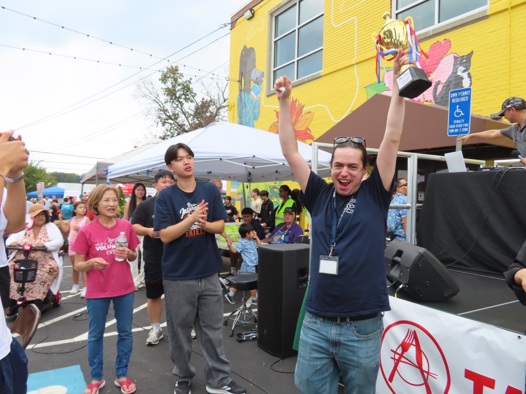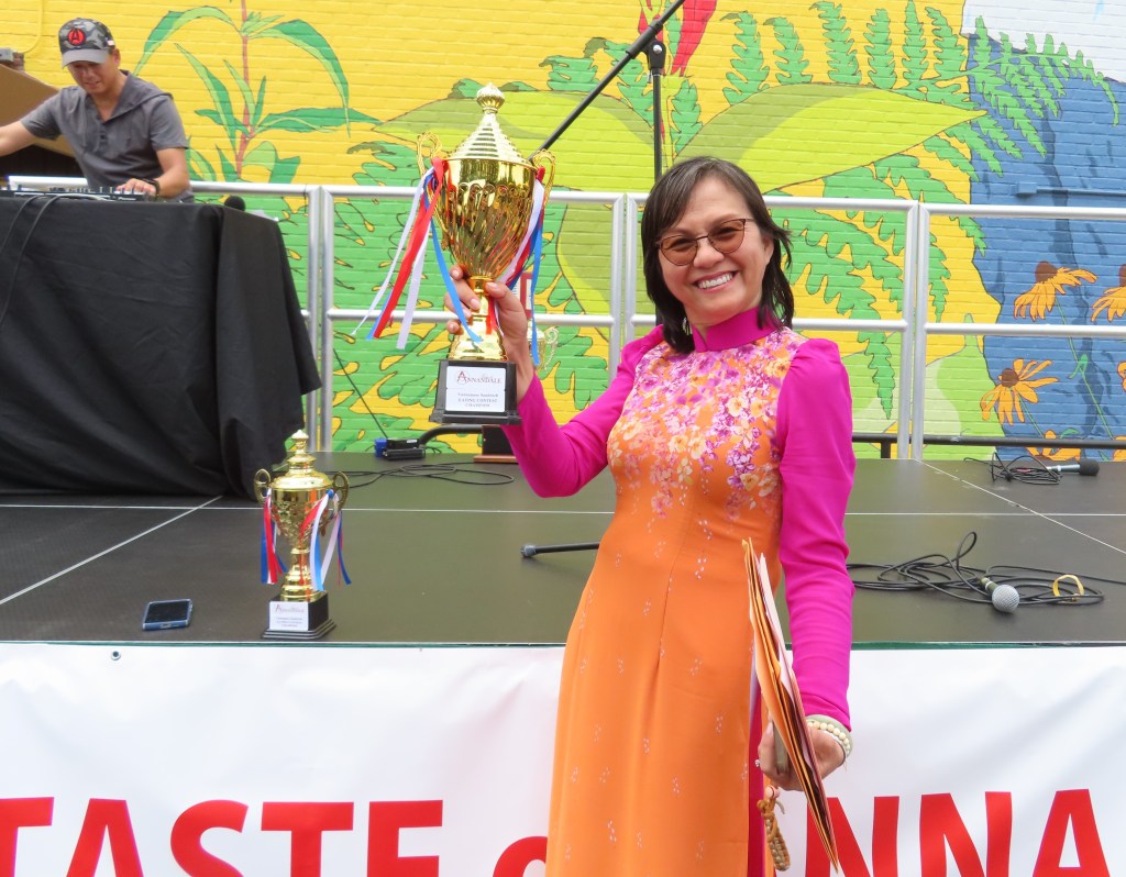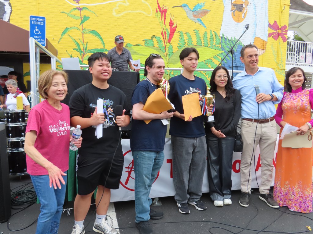 The Eating Contest was sponsored by the Asian American Community Center in Annandale, the Pho 72 restaurant, and the Viet American Association. Del. Marcus Simon handed out the trophies. Members of the Vietnamese Student Association volunteered and competed.